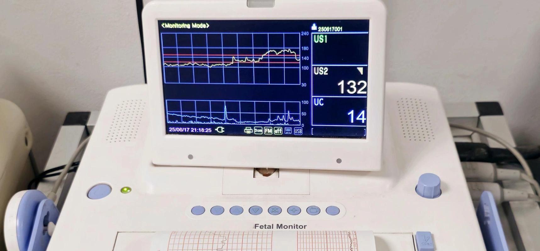 Graph (CTG tracing) is generated showing heart rate patterns.